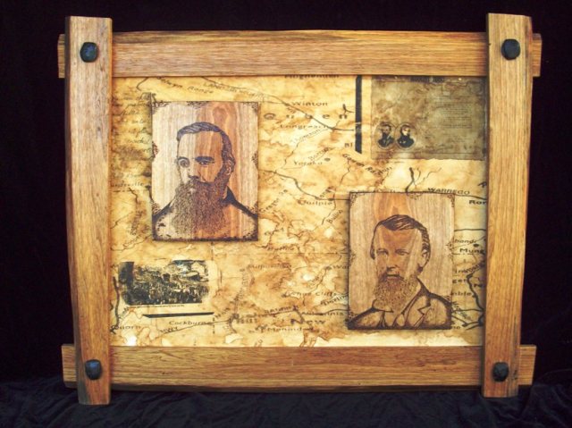 Robert Morgan’s art has been exhibited at local and state levels. He specialises in native timbers, mirrors, lead light, pryography, signs and logos. His artwork reflects upon Australia’s identity in order to promote the country’s heritage, hence the entire portfolio has come to been known as ‘The Australian Heritage Collection’.